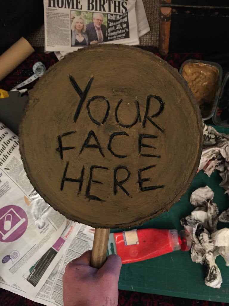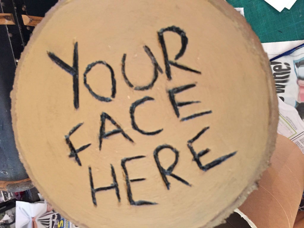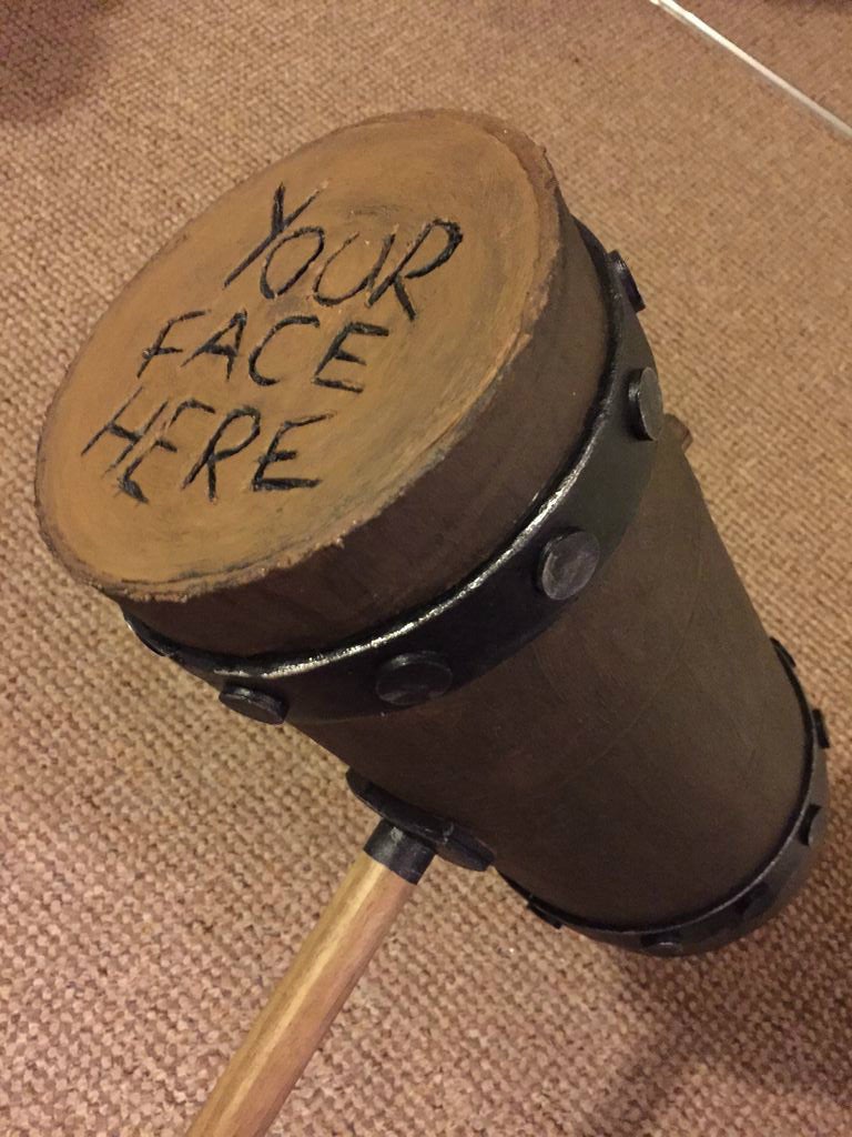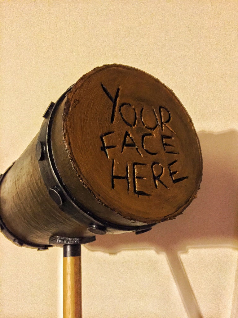 So i marked out the words 'your face here' on the blank end of the hammer and carved it out with a sharp scalpel.