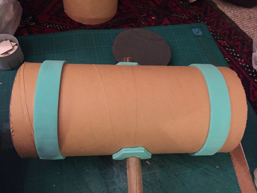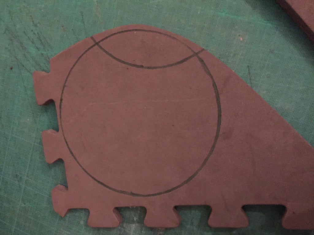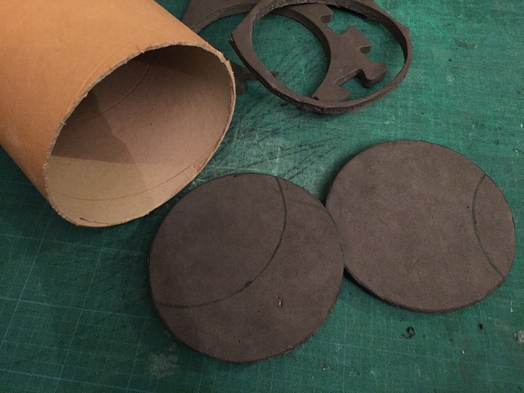 Using Some 10mm EVA foam i cut two circles the size of the ends of the tubes. These will be the ends of the hammer.