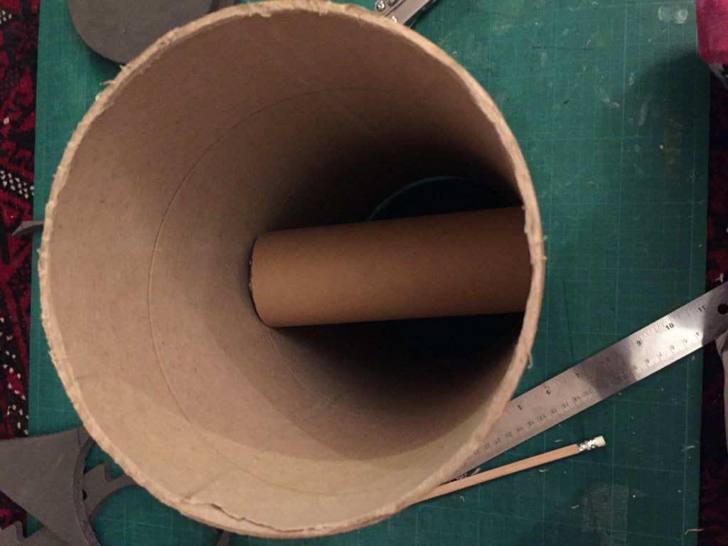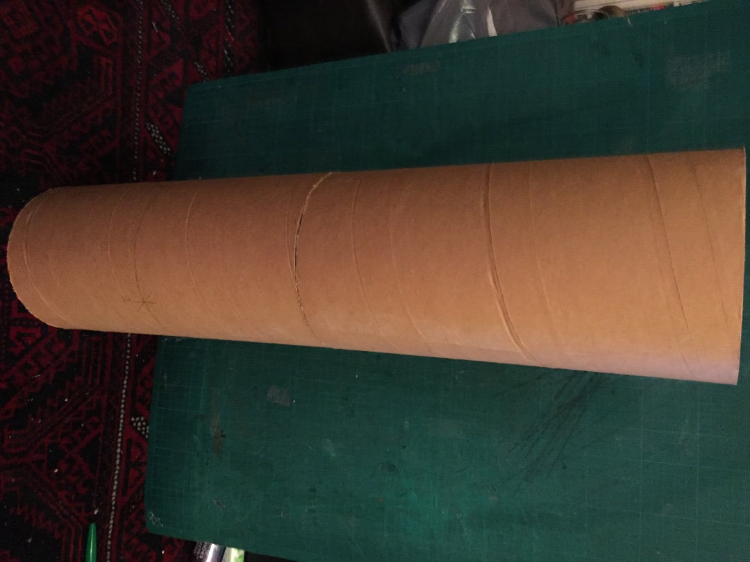I had a section of large cardboard tube. this tube is 159mm diameter. we had a tube that was over 300mm across but we decided we didn't want it to be too huge.