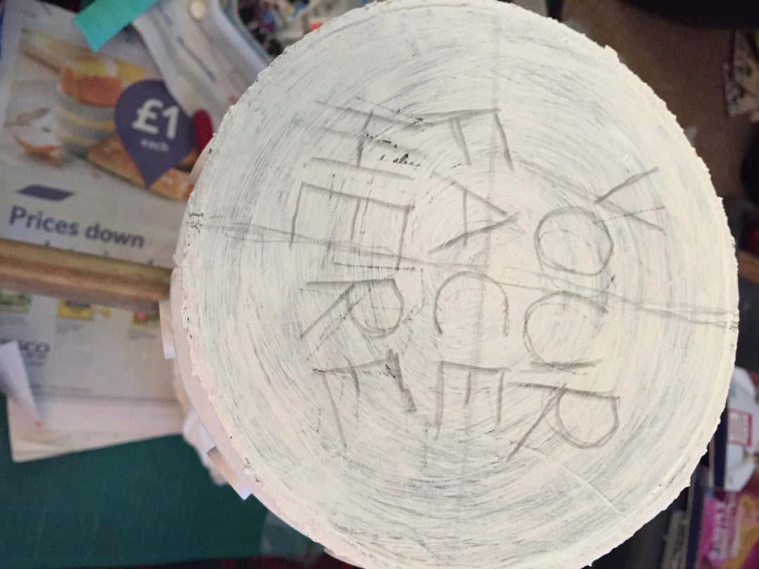 I then had to paint layers of PVA and then a layer of paint over the carved words, as i had exposed the foam again.