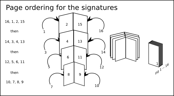 Using the above image it was made a little easier to do, although my signatures had one more sheet of pages but once I got started it got easier as I went along.