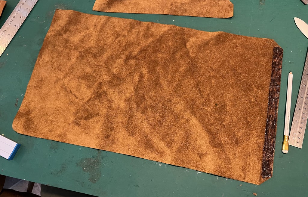 I then added 10mm to each edge ( top, bottom, and each end) of the leather measurements to allow for the amount that will need folding over to create the edge of the cover.