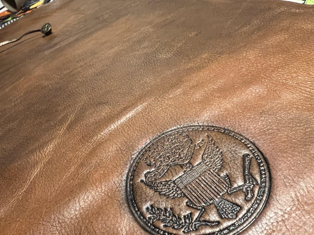 This step requires a metal leather stamp. I had a friend that has access to a router that can cut aluminium blocks and they carved out the stamp for the seal in the cover.