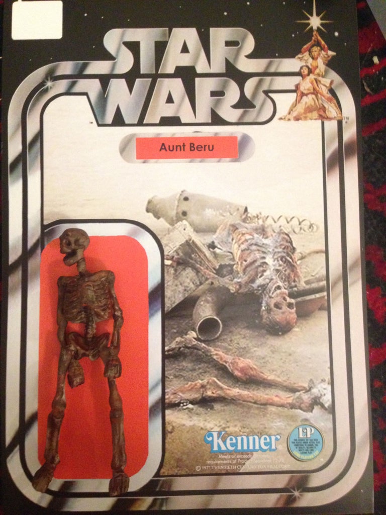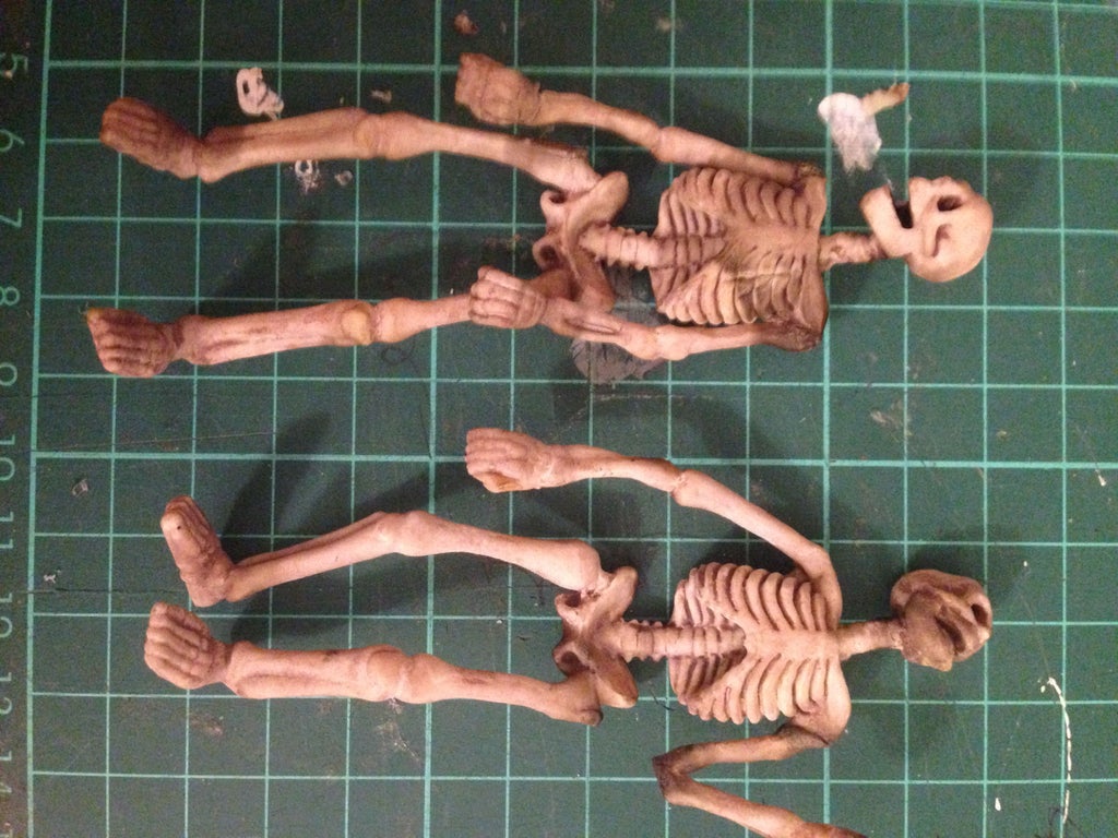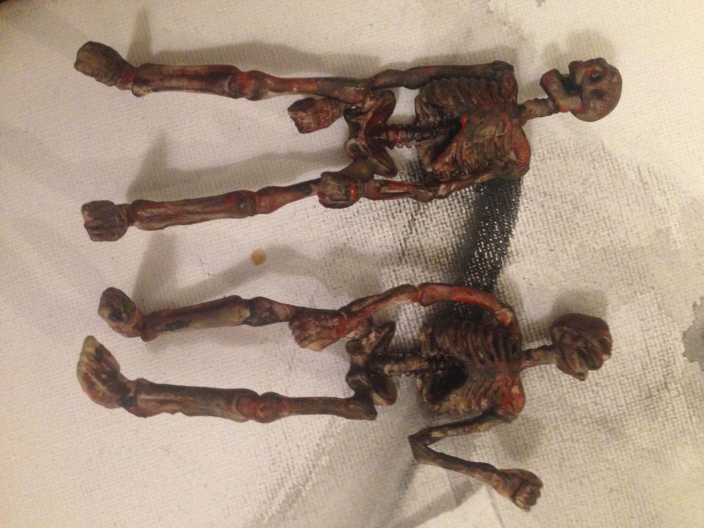 Once the glue had dried and the plastic had cooled i used acrylic paint to darken the skeletons down to make them look like they had been burned by some evil stormtroopers. once the layers of brown and dark red paint had dried i gave it a little coat of bright red to make them look a little bloody.