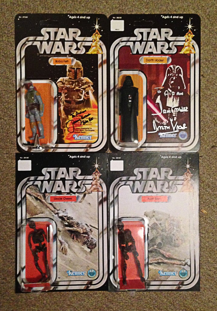 Re-carded Original kenner figures signed by Jeremy Bulloch and David Prowse.
