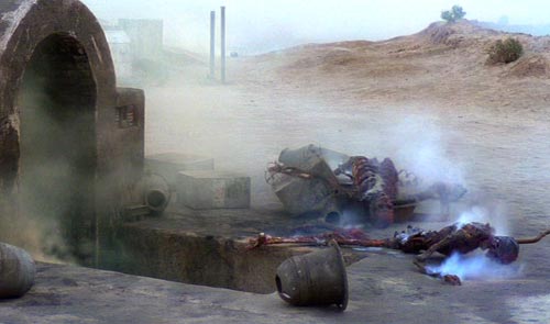 I also searched for screen grabs of the scene when luck comes back to the Lars homestead to see the burning skeletons.